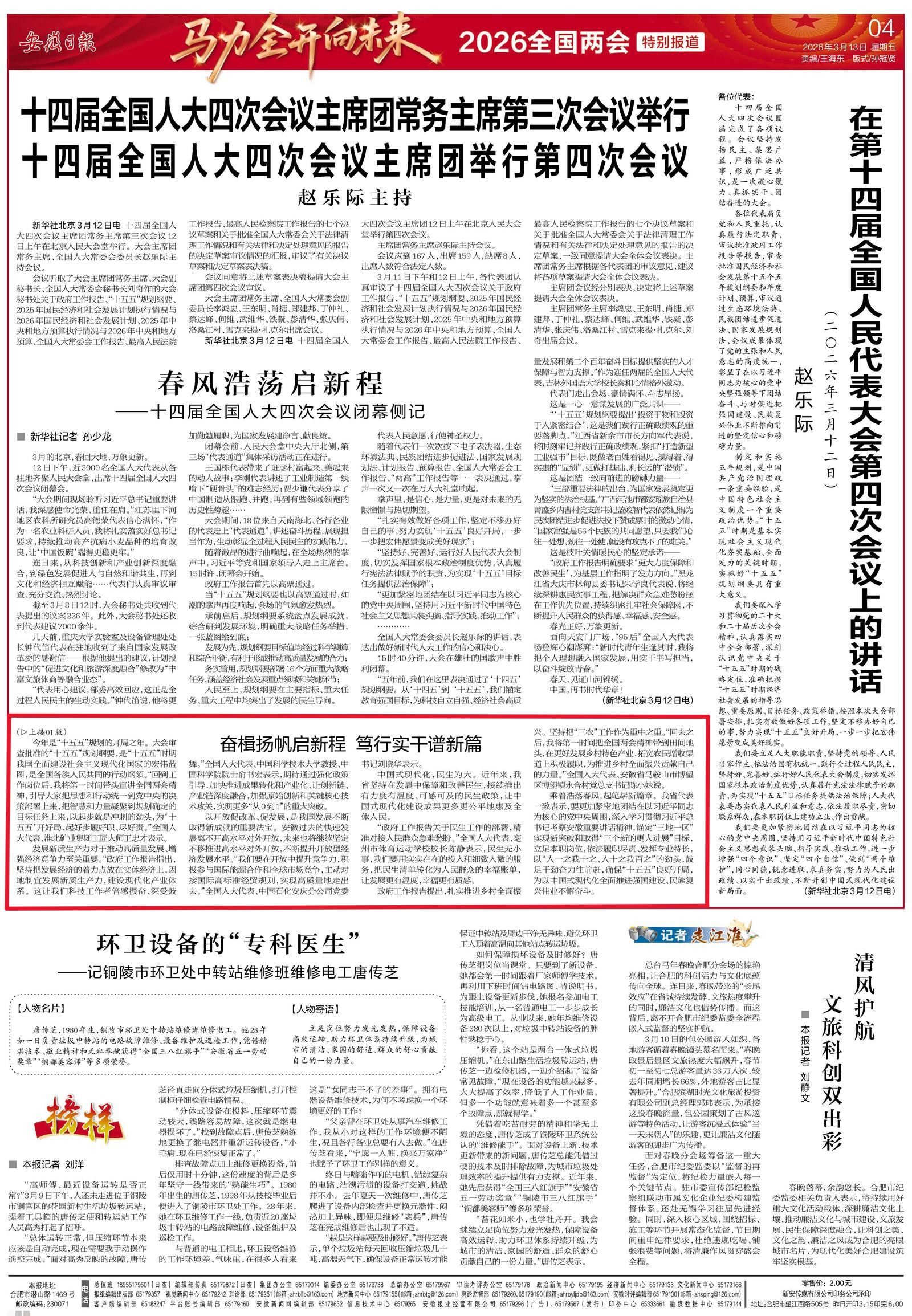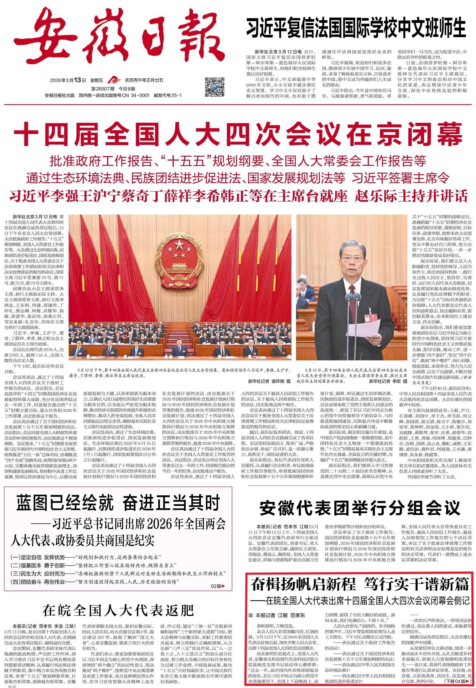 记者:江敏 范孝东 来源:安徽日报第01版、第04版 2026-03-13