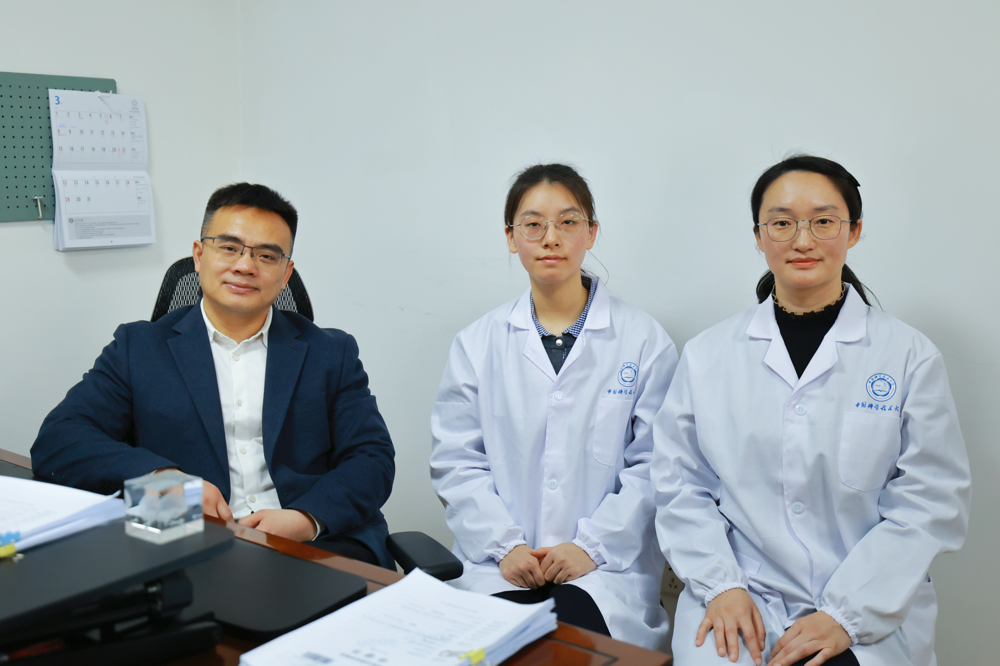 张智教授(左一)与研究团队成员在办公室合影。