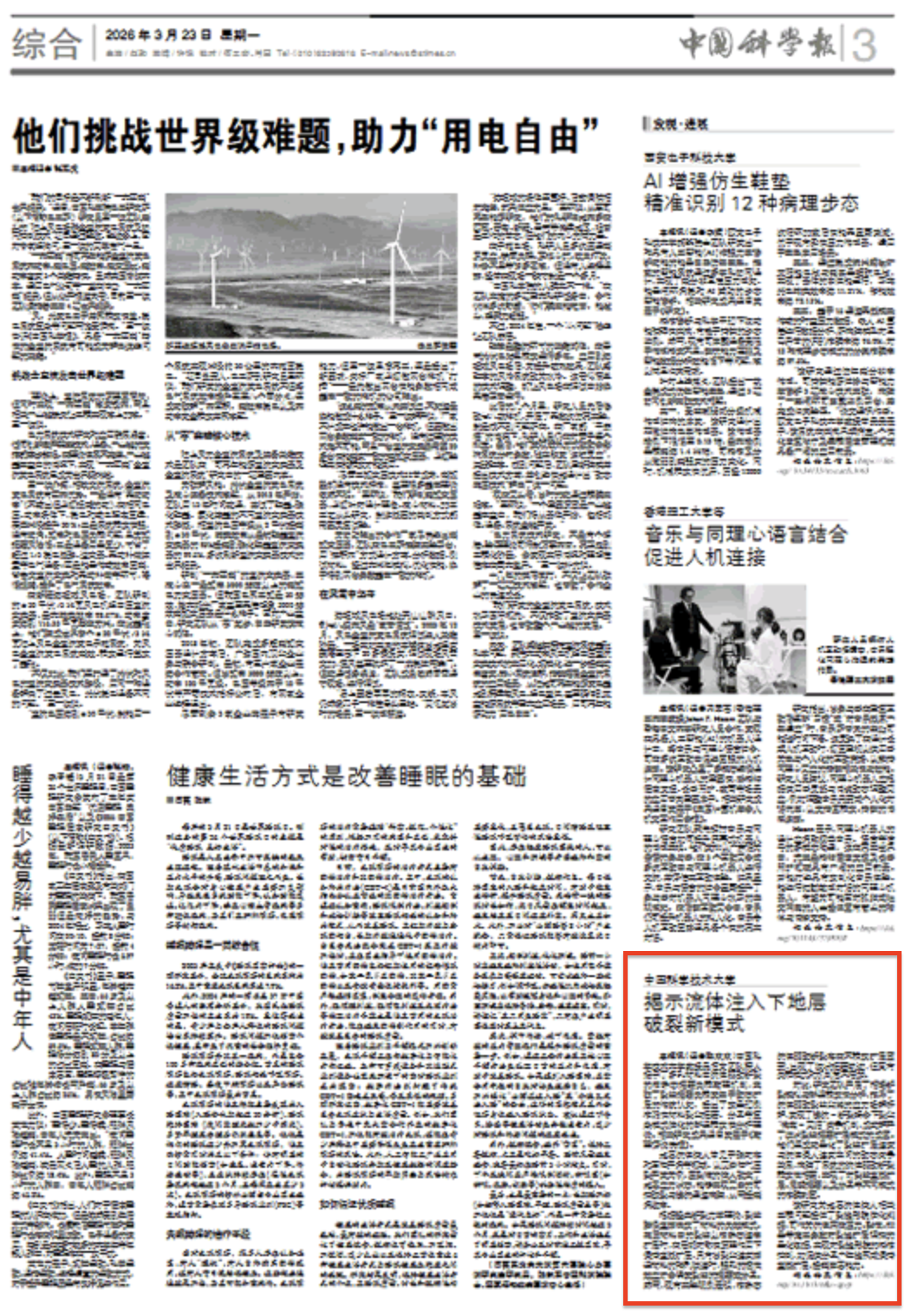 【中国科学报】中国科学技术大学揭示流体注入下地层破裂新模式