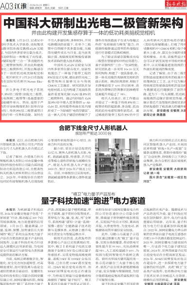 【新安晚报】中国科大研制出光电二极管新架构 并由此构建开发集感存算于一体的低功耗类脑视觉相机